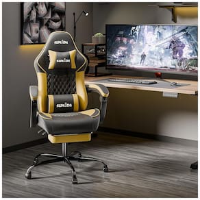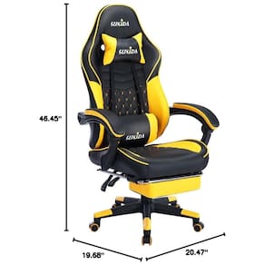 Os designers profissionais melhoraram as especificações das cadeiras de jogos tradicionais e mudaram a sensação de sentar com base na ergonomia. O assento tem de largura e foi projetado para ser mais espaçoso. Uma melhoria na superfície tradicional do assento em forma de U, os lados foram aparados para torná lo quase plano. Mesmo se você abrir as pernas, você não se sente contido e não sente dor quando se senta. Se você se sentar por longos períodos de tempo no trabalho ou no estudo, continuará se sentindo confortável, mesmo se mover as pernas. A profundidade do assento é de e a distância entre a parte de trás do joelho e o assento é muito próxima para apoiar as pernas. Projeto ergonômico O recurso do apoio de braço de ligação é que ele pode ser suportado em qualquer forma do corpo e ângulo. Apoie suavemente o braço enquanto olha para o telefone ou para os quadrinhos. Com a almofada grossa, você pode descansar o braço por longos períodos de tempo sem dor ou fadiga. Usando o elevador de gás Premium de alta qualidade certificado pela agência internacional de certificação SGS, a qualidade e a segurança são garantidas. Ajuste de altura livre e suave dentro da faixa de altura de . Ajuste facilmente de 90 a 135 com o encosto reclinado. Descansar bem, mesmo quando você não está na cama ou no chão, é ótimo para cochilos entre os empregos. Rico em funções O travesseiro lombar está equipado com um dispositivo de vibração USB, que pode ser conectado a qualquer dispositivo de fonte de alimentação USB, como um computador, console de jogos ou carregador de celular, etc., para fornecer energia facilmente e realizar a vibração da cintura. O apoio para os pés telescópico permite que você se sente com as pernas estendidas. Se você usá lo com o encosto reclinável, pode relaxar como se estivesse deitado em uma cama. Quando não está em uso, o apoio para os pés se esconde facilmente sob a cadeira para economizar espaço. Rodízios silenciosos feitos em resina, movem se suavemente e sem barulho. A base de nylon não enferruja, é durável e possui forte resistência à compressão. Suporta uma carga de 150 kg.