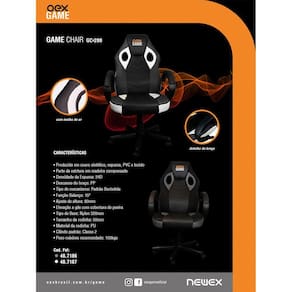Cadeira Gamer Gc200 Preta/Cinza - Oex A cadeira gamer GC 200 da Newex é recomendada para gamers e profissionais que passam muitas horas do dia em frente ao computador. Confortável e com design moderno possibilita aos jogadores ficarem várias horas jogando as partidas. Ergonômica com superfície em couro, foi produzida com materiais premium que garantem uma maior durabilidade do produto. Produzida em couro PU, PVC e tecido Parte da estrutura produzida em madeira compensada Densidade da espuma: 24D Tipo de mecanismo: padrão borboleta Ajuste de altura: 80 mm Elevação de gás Tamanho da rodinha: 50 mm Cilindro padrão: classe 2 Peso máximo recomendado: 100kg Imagens meramente ilustrativas. Todas as informações divulgadas são de responsabilidade do Fabricante/Fornecedor. Marca: Não Informado
