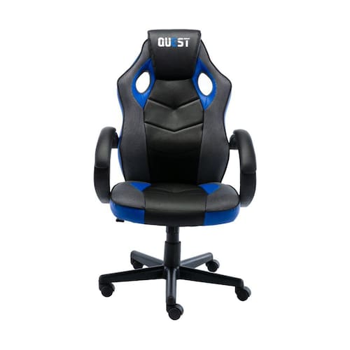 A cadeira Gamer que você precisa! A Gamer Quest é toda em couro ecológico com sua base em nylon. Ela possui o sistema relax e seus braços também são revestidos em couro ecológico, o que torna ela ainda mais confortável. Acabamento da Estrutura: Não se Aplica Altura do assento até o chão: 56 cm Ambiente Principal: Quarto Braço com Ajuste de Altura: Não Complexidade da Montagem: Média: pode ser montado por mais de uma pessoa e/ou necessite de maior conhecimento para montagem Cor: Preto/Azul Cor da Base: Preto Cor do Produto: Preto/Azul Empilhável: Não Encosto Reclinável: Sim Escala de Brilho: Fosco Estrutura do Assento: Madeira Estrutura do Encosto: Madeira Giratória: Sim Itens Inclusos: 1 Cadeira, Kit Ferragens, Manual de Montagem Linha ou Coleção: Quest Manual de Montagem e Instalação: https://cdn2.madeiramadeira.com.br/atributo/fratini/1112138-cadeira-gamer-quest-ref-283.pdf Material da Base: Aço/Nylon Necessita Montagem: Sim Origem do Produto: Importado Peso: 15,69 kg Possui Apoio para Braços: Sim Possui LED: Não Possui Rodízio: Sim Recomendações de Uso, Manutenção e Limpeza: Pano úmido Revestimento do Assento: Couro Ecológico Revestimento do Encosto: Poliuretano Sistema de Montagem: Parafusos Suporta Até (kg): 120 kg Tipo de Assento: Regulável Tipo de Encosto: Regulável Tipo de Madeira Maciça: Pinus