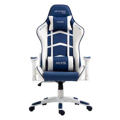 Características Marca: Mymax Nome produto: Cadeira Gamer MX5 Giratória Branco e Azul Marinho Modelo: Cadeira Gamer MX5 Cor: Branco/Azul Marinho Revestimento: Estofamento em tecido sintético PU Estrutura: Metálica Superfície de Apoio: Espuma com densidade controlada - 35 Assento / 22 Encosto Peso Máximo Suportado: 150kg Ajuste Altura: Sim - 10cm Encosto Regulável: Sim - Permite inclinação de até 180° Função Balanço: Sim - Função de balanço permite inclinar o assento em até 12° Gás: Classe 3 - 100 mm Diâmetro Pés: 70 cm Rodas: 50mm Braços: Regulagem 2D (direita/esquerda e altura) Almofadas: Almofadas para apoio lombar e de pescoço. Ambas com logo bordado Parafusos: 14 Altura do chão até apoio de braço: 59 - 76cm Altura do chão até assento: 45 - 55cm Altura do encosto: 85cm Largura do assento: Interna 34cm / Externa 53cm Profundidade interna do assento: 53cm EAN: 7898554985804 Informativo de Garantia: 12 meses de garantia (9 meses de garantia contratual junto ao fabricante + 3 meses referentes à garantia legal, nos termos do artigo 26, II, do Código de Defesa do Consumidor)