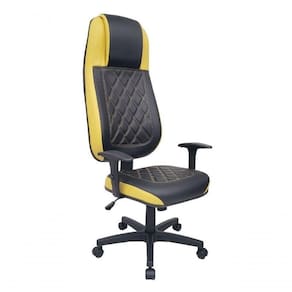 Cadeira Gamer para Escritório e Home Office sendo encosto revestido com gomos costurados preto Cor: Amarelo com Preto - Tonalidade da Cor: Amarelo com Preto - Linha Gamer Blenda - Marca: Design Office Móveis