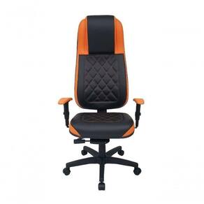 Cadeira Gamer para Escritório e Home Office sendo encosto revestido com gomos costurados preto Cor: Laranja com Preto - Tonalidade da Cor: Laranja com Preto- Linha Gamer Blenda - Marca: Design Office Móveis