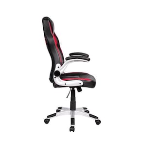 Assento com ajuste de altura, estofado e revestido em Couro Pu Preto com detalhes Vermelho e Cinza