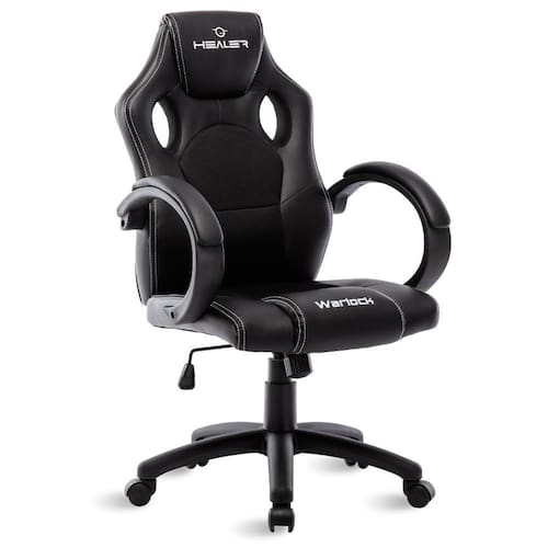 A Cadeira Gamer Preta Healer Warlock Reclinável Giratória, possui design mais simples, mas proporciona máximo conforto ao usuário, pois possui estrutura plástica resistente e é revestida por espuma com densidade 60 kgs/m3 e couro PU.