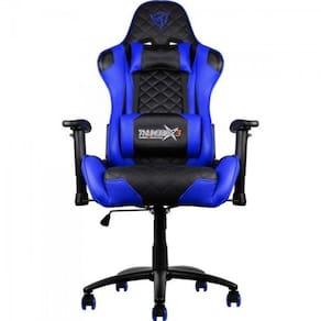 Cadeira Gamer Tgc12 Preta/azul Thunderx3 A TGC12 ThunderX3 ? uma cadeira gamer com revestimento de couro coberta com costuras de fibra de carbono. Seu estofado ? em forma de diamantes constru?da com firmeza para proporcionar conforto enquanto voc? desfruta do prazer de jogar seus games favoritos. Da sala de estar para a sala de jogos, voc? pode planejar a pr?xima domina??o do mundo do conforto de sua cadeira gamer.