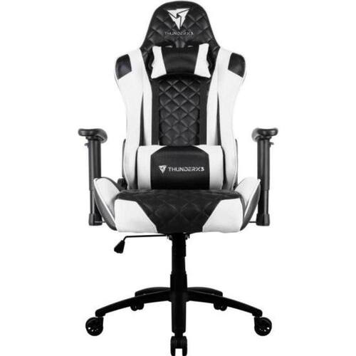 Cadeira Gamer Thunderx3 Tgc12 Branca A Cadeira Gamer ThunderX3 TGC12 é um modelo que possui cobertura em poliuretano com detalhes em fibra de carbono. O estofamento em forma de diamante na cadeira com acolchoamento firme nas áreas de contato garantem uma experiência confortável para quem passa longas horas sentado. Um assento firme com apoio para cabeça e almofada para as costas unido a um encosto reclinável em até 135 permitem conforto durante todo o dia, seja na hora de jogar ou enquanto descansa para recuperar suas energias. Ainda pensando no descanso a cadeira foi projetada com balanço que ao mesmo tempo que relaxa também promove o fluxo sanguíneo.