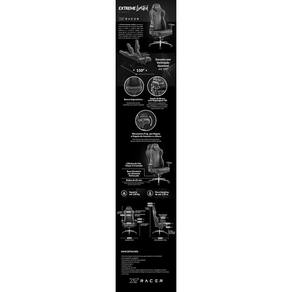 Especificações Técnicas Produto: Cadeira Gamer Marca: Xt Racer Modelo: Extreme Limited Código: XTR015 Espuma: 50 kg/m3 alta densidade Estrutura: Aço Peso suportado: até 120kg Indicação: Usuários de até 2,00m de altura Tamanho: 74 x 73 x 125-133 cm Cor: Preto Garantia: 6 meses contra defeitos de fabricação