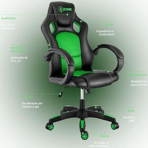 DESCRIÇÃO GERAL Para quem é vidrado em games, a Cadeira Gamer CGR-02 da XZONE possui design ergonômico e é superconfortável. Com garantia de 1 ano, a Cadeira possui espuma injetável e apoio estofado para o braço. Suas rodas de alta resistência garantem fácil movimentação em um giro de 360º. Atendendo às suas necessidades, seu encosto reclinável pode ser ajustado de 0º a 13º e seu estofamento de couro sintético PU oferece maior durabilidade e melhor acabamento. Para economizar sua energia e seu tempo para jogadas mais longas, a altura do assento é ajustável com molas a gás.