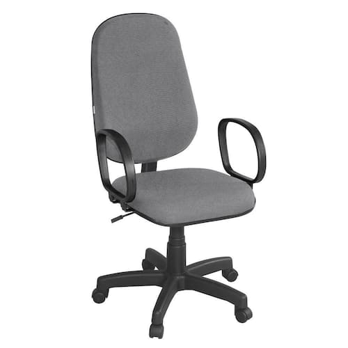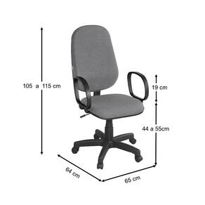 Base giratória sem relax e regulagem de altura com sistema a gás. Assento e encosto injetado e anatômico e tapeçado em tecido J. Serrano. Base e Braço na cor preta.