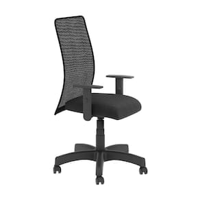 Assento em tecido Space e encostos em tela super resistente preta. Base e braço pretos.