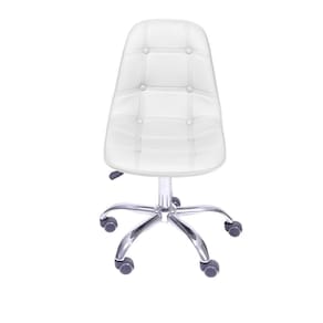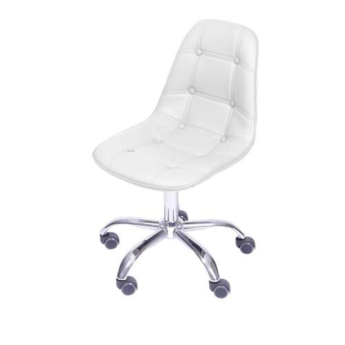 Cadeira Giratória Eames Botonê Assento Pu Branca Base Rodizio Cromada - Branco