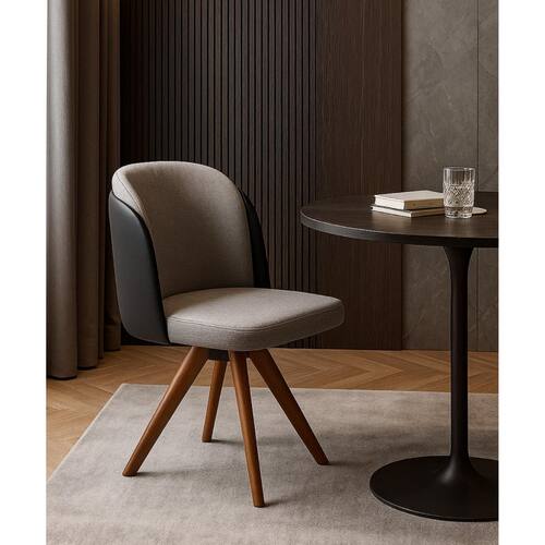 Cadeira Giratória em Madeira Maciça CorMel Luma - Exclusiva Linho Cinza - Características Gerais do Produto: • Altura: 89 cm • Madeira: Eucalipto • Tipo de Produto: Cadeira giratória • Largura: 56 cm • Profundidade: 60 cm • Assento: Giratório • Peso Suportado: 120 kg • Material da Base: Madeira Maciça • Cor da base: CorMel • Tecido do Revestimento: Linho cinza com Courino Durango Preto • Ideal Para: Salas de Jantar, Recepções Garantia: • 3 meses