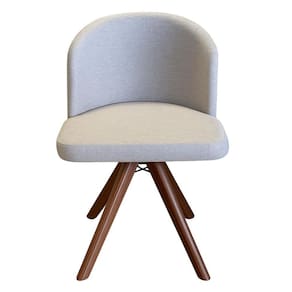 Cadeira Giratória Madeira Maciça Cor Castanho com Assento Estofado Joana – Exclusiva Linho Palha -