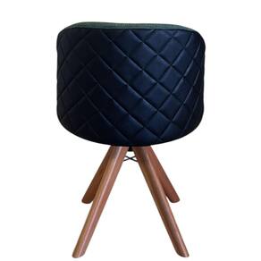 Cadeira Giratória Madeira Maciça Cor Castanho com Assento Estofado Joana – Exclusiva Courino Durango Preto -