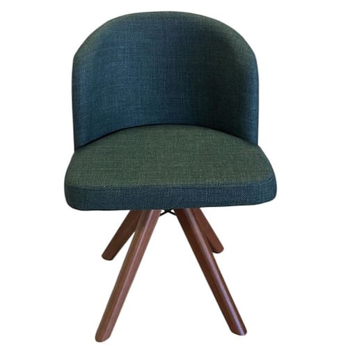 Cadeira Giratória Madeira Maciça Cor Castanho com Assento Estofado Joana – Exclusiva Linho Lincoln Verde -