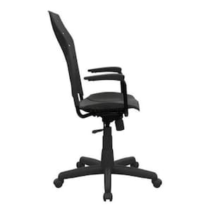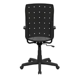 A cadeira giratória é constituída de assento e encosto; plataforma, coluna e base com rodízio. A estrutura de sustentação do assento encosto é fabricada em tubos de aço 1010 / 1020 com ø 22.20 mm e 1.50mm de espessura de parede, fosfatada e pintada com tinta epóxi pó. Os tubos são curvados e furados para acoplarem-se ao assento e encosto unindo-se com o mecanismo onde serão fixados por 4 parafusos m6x35mm fenda phillips cabeça panela. O conjunto é então acoplando ao pistão a gás e esse acoplado à base de cinco pernas com cinco rodízios. O assento é produzido em polipropileno copolímero injetado e moldado anatomicamente com acabamento texturizado, com dimensões de 465 mm de largura, 470 mm de profundidade 5 mm de espessura de parede com cantos arredondados, unidos à estrutura por meio de 4 (quatro) porcas aparafusadas (bucha americana ¼X13mm); e 4 (quatro) parafusos sextavados flangeados ¼X1.1/2. Sobre o assento existe um estofamento com alma plástica que é fixado ao mesmo por meio de parafusos para plástico. Altura do assento é regulável de 410 à 520 mm. O encosto é fabricado em polipropileno copolímero injetado e moldado anatomicamente com acabamento texturizado, com dimensões de 460mm de largura por 610mm de altura, com espessura de parede de 5mm e cantos arredondados, unidos a estrutura por dupla cavidade na parte posterior do encosto que se encaixa a estrutura metálica, travada por dois pinos fixadores plásticos injetados em polipropileno copolímero, na cor do encosto, dispensando a presença de rebites ou parafusos. O encosto possui aberturas para ventilação. O mecanismo é feito em chapa de aço 1010/1020 de espessura 2.65mm, fosfatada pintada com tinta epóxi pó. Dotada de alavanca plástica para acionamento da coluna a gás para regulagem de altura do assento, além de travamento e liberação do reclinamento simultâneo de assento e encosto. A tensão desse reclinamento é ajustável por meio de uma manopla que quando girada aumenta ou diminui a pressão sobre a mola que regula o movimento. A base penta pé, é fabricada em chapa 1010/1020 de espessura 1,20mm, fosfatada pintada com tinta epóxi pó, coberta com carenagem injetada em polipropileno com acabamento texturizado. Coluna modelo gás com curso de 110 mm e comprimento mínimo de 295 mm e máximo de 405 mm, coberta com carenagem injetada em polipropileno com acabamento texturizado. O apoio de braço é formado pelo prolongamento da estrutura de sustentação do assento e encosto revestido com uma peça em polipropileno copolímero injetado com acabamento texturizado. Suas dimensões são 53 mm de largura por 240 mm de comprimento e são fixados por dois parafusos para plástico.