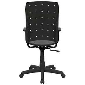 Cadeira giratória plaxmetal presidente ergoplax - 33682.1.13 Cor: preto A cadeira giratória é constituída de assento e encosto; plataforma, coluna e base com rodízio. A estrutura de sustentação do assento encosto é fabricada em tubos de aço 1010 / 1020 com ø 22.20 mm e 1.50mm de espessura de parede, fosfatada e pintada com tinta epóxi pó. Os tubos são curvados e furados para acoplarem-se ao assento e encosto unindo-se com o mecanismo onde serão fixados por 4 parafusos m6x35mm fenda phillips cabeça panela. O conjunto é então acoplando ao pistão a gás e esse acoplado à base de cinco pernas com cinco rodízios. O assento é produzido em polipropileno copolímero injetado e moldado anatomicamente com acabamento texturizado, com dimensões de 465 mm de largura, 470 mm de profundidade 5 mm de espessura de parede com cantos arredondados, unidos à estrutura por meio de 4 quatro porcas aparafusadas bucha americana ¼X13mm ; e 4 quatro parafusos sextavados flangeados ¼X1.1/2. Sobre o assento existe um estofamento com alma plástica que é fixado ao mesmo por meio de parafusos para plástico. Altura do assento é regulável de 410 à 520 mm. O encosto é fabricado em polipropileno copolímero injetado e moldado anatomicamente com acabamento texturizado, com dimensões de 460mm de largura por 610mm de altura, com espessura de parede de 5mm e cantos arredondados, unidos a estrutura por dupla cavidade na parte posterior do encosto que se encaixa a estrutura metálica, travada por dois pinos fixadores plásticos injetados em polipropileno copolímero, na cor do encosto, dispensando a presença de rebites ou parafusos. O encosto possui aberturas para ventilação. O mecanismo é feito em chapa de aço 1010/1020 de espessura 2.65mm, fosfatada pintada com tinta epóxi pó. Dotada de alavanca plástica para acionamento da coluna a gás para regulagem de altura do assento, além de travamento e liberação do reclinamento simultâneo de assento e encosto. A tensão desse reclinamento é ajustável por meio de uma manopla que quando girada aumenta ou diminui a pressão sobre a mola que regula o movimento. A base penta pé, é fabricada em chapa 1010/1020 de espessura 1,20mm, fosfatada pintada com tinta epóxi pó, coberta com carenagem injetada em polipropileno com acabamento texturizado. Coluna modelo gás com curso de 110 mm e comprimento mínimo de 295 mm e máximo de 405 mm, coberta com carenagem injetada em polipropileno com acabamento texturizado. O apoio de braço é formado pelo prolongamento da estrutura de sustentação do assento e encosto revestido com uma peça em polipropileno copolímero injetado com acabamento texturizado. Suas dimensões são 53 mm de largura por 240 mm de comprimento e são fixados por dois parafusos para plástico. Dimensões do produto Altura: 99 cm Com pistão fechado e 1,10 m com pistão aberto. Largura assento: 46 cm Profundidade assento: 42 cm Ean: 7899832027964