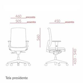 Cadeira Giratória Presidente Brizza Preta Com desing moderno e características ergonomicamente imprescindíveis para a rotina de trabalho. A cadeira brizza é uma ótima escolha, pois seu amplo encosto em tela com apoio lombar garante um nível de conforto que agrada até os usuários mail exigentes. Com seu desing moderno e arrojado a cadeira brizza garante uma incomparável versatilidade de combinação nos mais diversos ambientes corporativos e home offices. Características Espuma flexível de poliuretano de alta densidade, alta resiliência, características dimensionais do assento largura mínima de 500 mm de profundidade da superfície mínima de 480 mm, espessura média predominante da espuma de no mínimo, 35 mm Assento revestido no tecido preta Assento com acabamento dado por contra capa injetada em polipropileno de cor preta. Sistema relax o mecanismo possui 1 alavanca, sendo que a mesma comanda o acionamento da regulagem do pistão e libera ou trava o movimento reclinação do assento e encosto de forma sincronizada.O movimento pode ser ajustada através de uma mola na parte frontal do mecanismo. Encosto em tela com apoio lombar Coluna a gás preta classe 4 com curso 120mm Estrela em aço com cinco hastes com rodizíos pp preta Braços com regulagem de altura, com estrutural em aço e apoio em nylon . Produto nacional Suporta 110 kg de 12 meses contra defeitos de fabricação Produto entregue desmontado, ficando a responsabilidade da montagem pelo comprador. A cadeira deve ser limpa com pano úmido ou sabão neutro. nunca usar produtos abrasivos A imagens são meramente ilustrativas. Qualquer dúvida . Marca: Não Informado