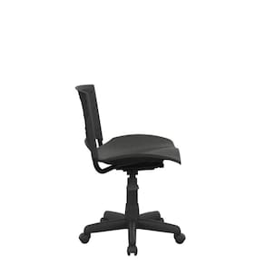 A Cadeira Giratoria e constituida de assento e encosto; plataforma, coluna e base com rodizio. A estrutura de sustentacao do assento encosto e fabricada em tubos de aco 1010 / 1020 com 22.20mm e 1.50 mm de espessura de parede, fosfatada e pintada com tinta epoxi po. Os tubos sao curvados e furados para acoplarem-se ao assento e encosto unindo-se com o mecanismo onde serao fixados por 4 parafusos M6x35mm fenda Phillips cabeca panela. O conjunto e entao acoplando ao pistao e esse acoplado e base de cinco pernas com cinco rodizios. O assento e produzido em polipropileno copolimero injetado e moldado anatomicamente com acabamento texturizado, com dimensoes de 465 mm de largura, 470mm de profundidade 5mm de espessura de parede com cantos arredondados, unidos a estrutura por meio de 4 -quatro- porcas aparafusadas; e 4 -quatro- parafusos sextavados flangeados. O encosto e fabricado em polipropileno copolimero injetado e moldado anatomicamente com acabamento texturizado, com dimensoes de 460 mm de largura por 330mm de altura, com espessura de parede de 5mm e cantos arredondados, unidosa estrutura por dupla cavidade na parte posterior do encosto que se encaixa a estrutura metalica, travada por dois pinos fixadores plasticos injetados em polipropileno copolimero, na tonalidade do encosto, dispensando a presenca de rebites ou parafusos. O encosto possui furos para ventilacao. O mecanismo e feito em chapa de aco 1010/1020 de espessura 2.65 mm, fosfatada pintada com tinta epoxi po. Dotada de alavanca plastica para acionamento da coluna para regulagem de altura do assento. A base penta pe, e fabricada em chapa 1010/1020 de espessura 1,20 mm, fosfatada pintada com tinta epoxi po, coberta com carenagem injetada em polipropileno com acabamento texturizado. Coluna com curso de 110mme comprimento minimo de 295 mm e maximo de 405mm, coberta com carenagem injetada em polipropileno com acabamento texturizado.