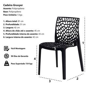Cadeira Gruvyer Nude Sala Cozinha Jantar Modelo: Cadeira Gruvyer Nude Assento: Polipropileno Base: Polipropileno Profundidade: 51 cm Largura: 42 cm Altura Total: 81 cm Altura do Chão Até o Assento: 45 cm Profundidade Interna do Assento: 43 cm Largura Interna do Assento: 42 cm Peso Máx. Recomendado: 120 kgs Peso unitário: 5 kgs