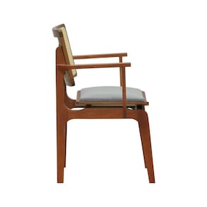 - Materiais: Estrutura em madeira de eucalipto, encosto com telinha sextavada aplicada e assento anatômico envernizado