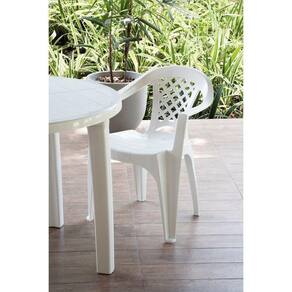 Produzida em polipropileno ela é uma cadeira com braços perfeita para embelezar ambientes internos ou externos.