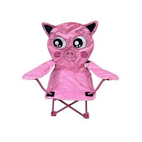 Cadeira Infantil Retrátil Articulada Praia Camping Piscina Apoio de Braço e Bolsa Brinqway Bw-290 - Estampa: Porco