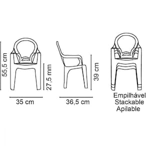 - Empilhável: Sim, até 12 peças