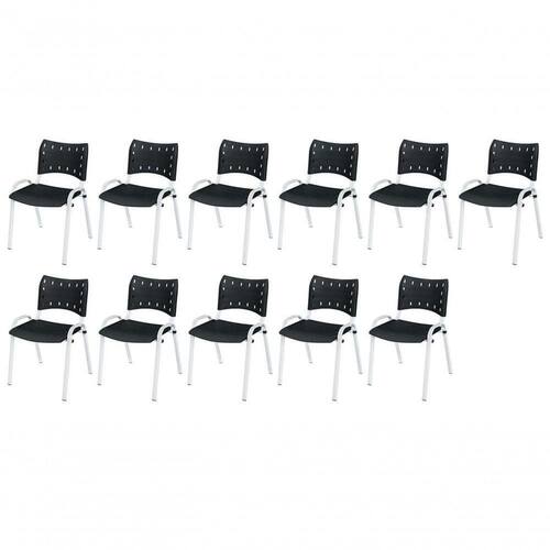 KIT 11 CADEIRA ISO EMPILHAVEL BASE BRANCO ESCRITORIO, , - PRETO