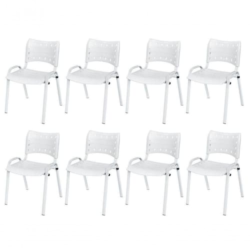 KIT 8 CADEIRA ISO EMPILHAVEL BASE BRANCO ESCRITORIO, , - BRANCO