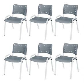 KIT 6 CADEIRA ISO EMPILHAVEL BASE BRANCO ESCRITORIO, , - CINZA