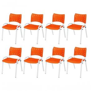 KIT 8 CADEIRA ISO EMPILHAVEL BASE BRANCO ESCRITORIO, , - LARANJA