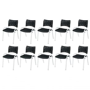 KIT 10 CADEIRA ISO EMPILHAVEL BASE BRANCO ESCRITORIO, , - PRETO