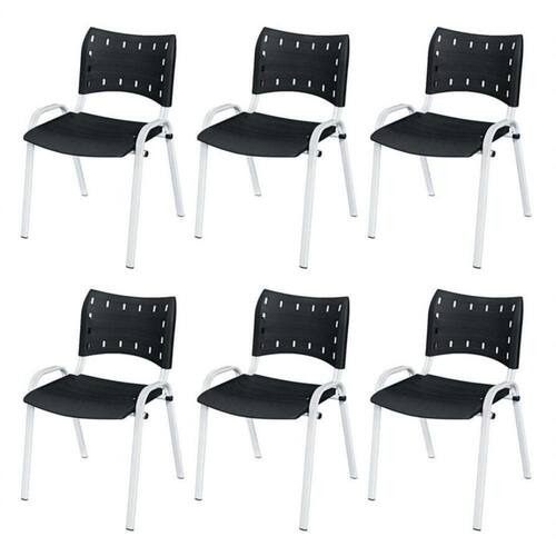 KIT 6 CADEIRA ISO EMPILHAVEL BASE BRANCO ESCRITORIO, , - PRETO