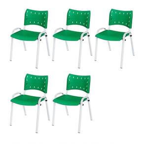 KIT 5 CADEIRA ISO EMPILHAVEL BASE BRANCO ESCRITORIO, , - VERDE