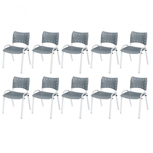 Cadeira Iso Base Branco Igreja, Escola, Escritório - Cinza Kit 10 Peças