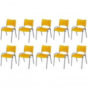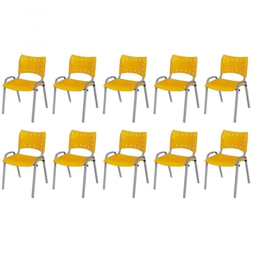 KIT 10 CADEIRA ISO EMPILHAVEL BASE CINZA ESCRITORIO, , - AMARELO
