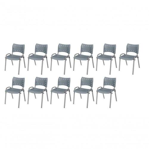KIT 11 CADEIRA ISO EMPILHAVEL BASE CINZA ESCRITORIO, , - CINZA