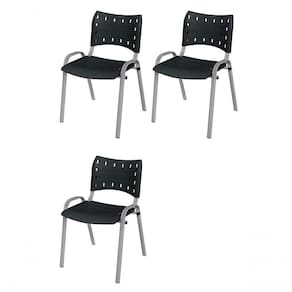 KIT 3 CADEIRA ISO EMPILHAVEL BASE CINZA ESCRITORIO, , - PRETO
