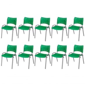 KIT 10 CADEIRA ISO EMPILHAVEL BASE CINZA ESCRITORIO, , - VERDE