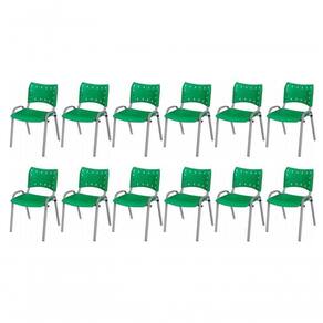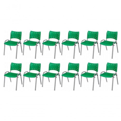 KIT 12 CADEIRA ISO EMPILHAVEL BASE CINZA ESCRITORIO, , - VERDE