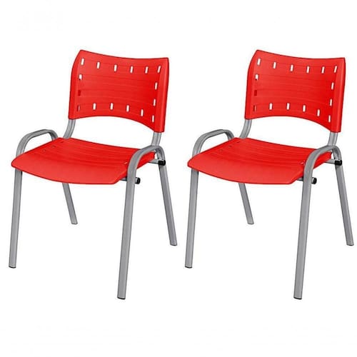 KIT 2 CADEIRA ISO EMPILHAVEL BASE CINZA ESCRITORIO, , - VERMELHO