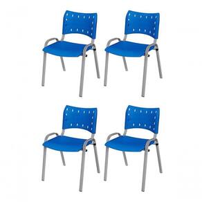 KIT 4 CADEIRA ISO EMPILHAVEL BASE CINZA ESCRITORIO, , - AZUL