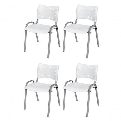 KIT 4 CADEIRA ISO EMPILHAVEL BASE CINZA ESCRITORIO, , - BRANCO