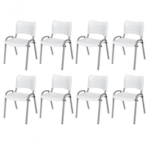 KIT 8 CADEIRA ISO EMPILHAVEL BASE CINZA ESCRITORIO, , - BRANCO