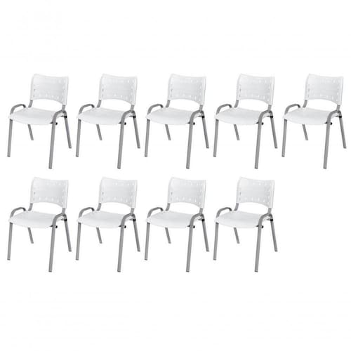 KIT 9 CADEIRA ISO EMPILHAVEL BASE CINZA ESCRITORIO, , - BRANCO