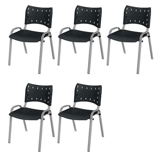 KIT 5 CADEIRA ISO EMPILHAVEL BASE CINZA ESCRITORIO, , - PRETO