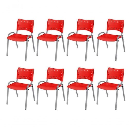 Cadeira Iso Base Cinza, Igreja, Escola, Escritório - Vermelho Kit 8 Peças