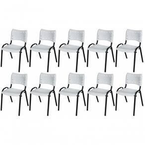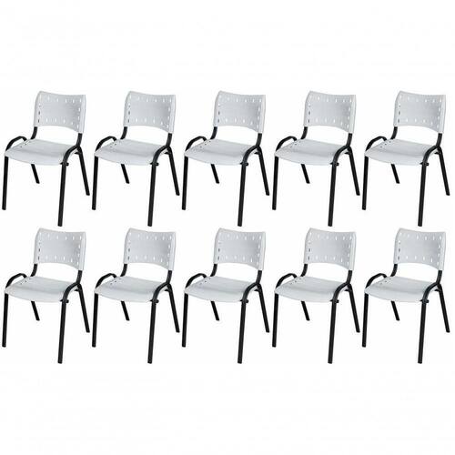 KIT 10 CADEIRA ISO EMPILHAVEL BASE PRETO ESCRITORIO, , - BRANCO