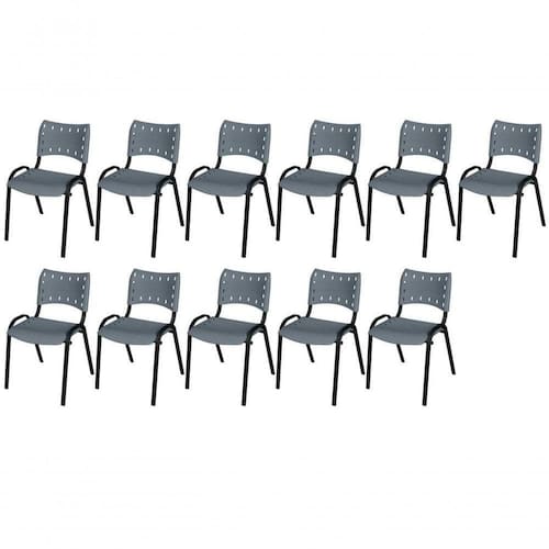KIT 11 CADEIRA ISO EMPILHAVEL BASE PRETO ESCRITORIO, , - CINZA